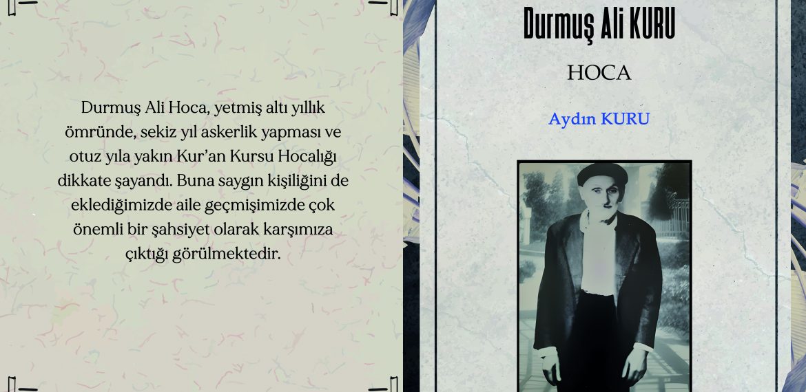 “Kaledibi Köyü” kitabını hazırlarken, Kuru ailesinin büyüğü olan Durmuş Ali Kuru Hoca’nın biyografisini yazmanın da gerekli olduğuna inanmıştım.