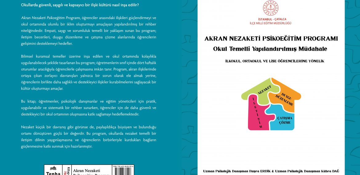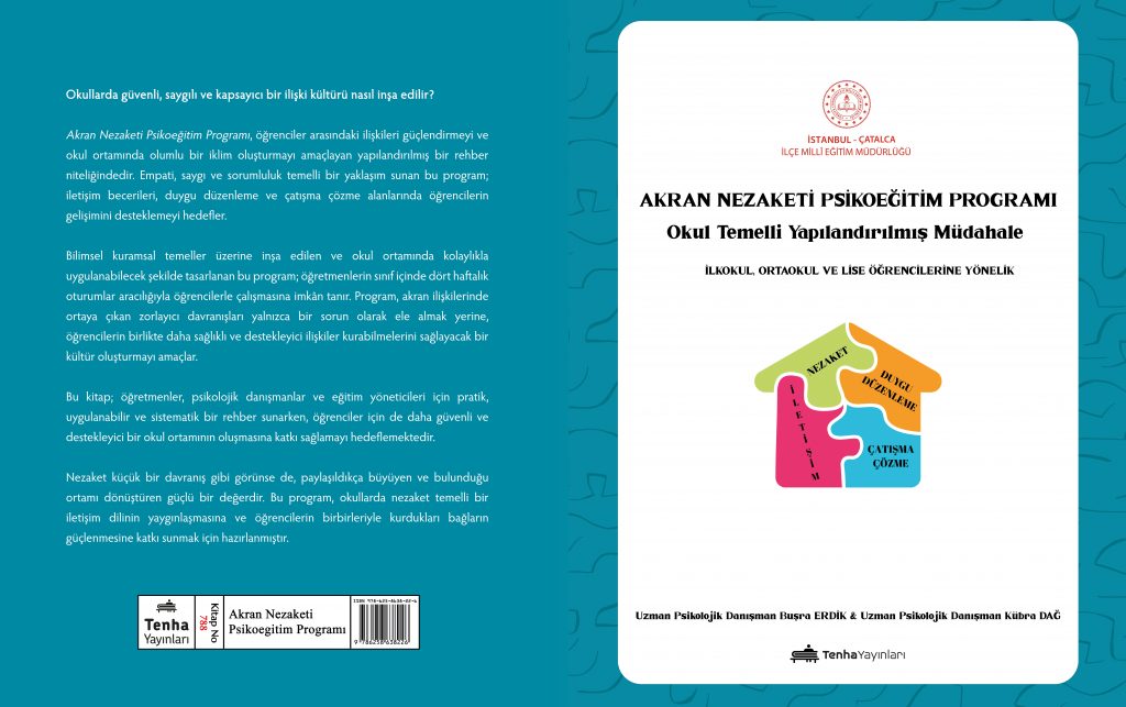 Kitap, psikolojik danışman olsun ya da olmasın, tüm okullarda sınıf rehber öğretmenleri tarafından kolaylıkla uygulanabilecek şekilde yapılandırılmıştır. Programın temel amacı; öğrenciler arasında nezaket temelli bir iletişim dili oluşturmak, akran ilişkilerini güçlendirmek ve zorbalık davranışlarının önlenmesini sağlamaktır. Kitabın tasarımında kullanılan şekil ve semboller de bu amaca hizmet edecek şekilde geliştirilmiştir. Kapakta yer alan şekil, okul çatısı altındaki birlikteliği simgesel olarak ifade ederken; şekli oluşturan dört renk’i parça ise nezaket, iletişim, duygu düzenleme ve çatışma çözme becerilerinin bütüncül gelişimiyle güvenli ve kapsayıcı bir okul ikliminin inşa edilebileceğini vurgulamaktadır.