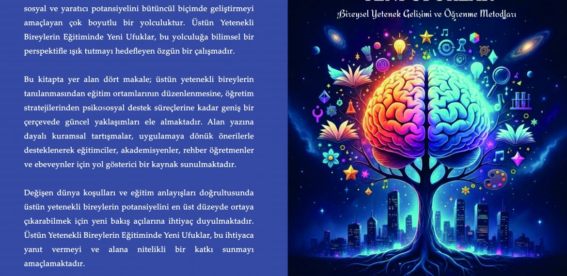 Üstün yetenekli bireylerin eğitimi, yalnızca akademik başarıyı önceleyen bir süreç değil; aynı zamanda bireyin duygusal, sosyal ve yaratıcı potansiyelini bütüncül biçimde geliştirmeyi amaçlayan çok boyutlu bir yolculuktur. Üstün Yetenekli Bireylerin Eğitiminde Yeni Ufuklar, bu yolculuğa bilimsel bir perspektifle ışık tutmayı hedefleyen özgün bir çalışmadır.